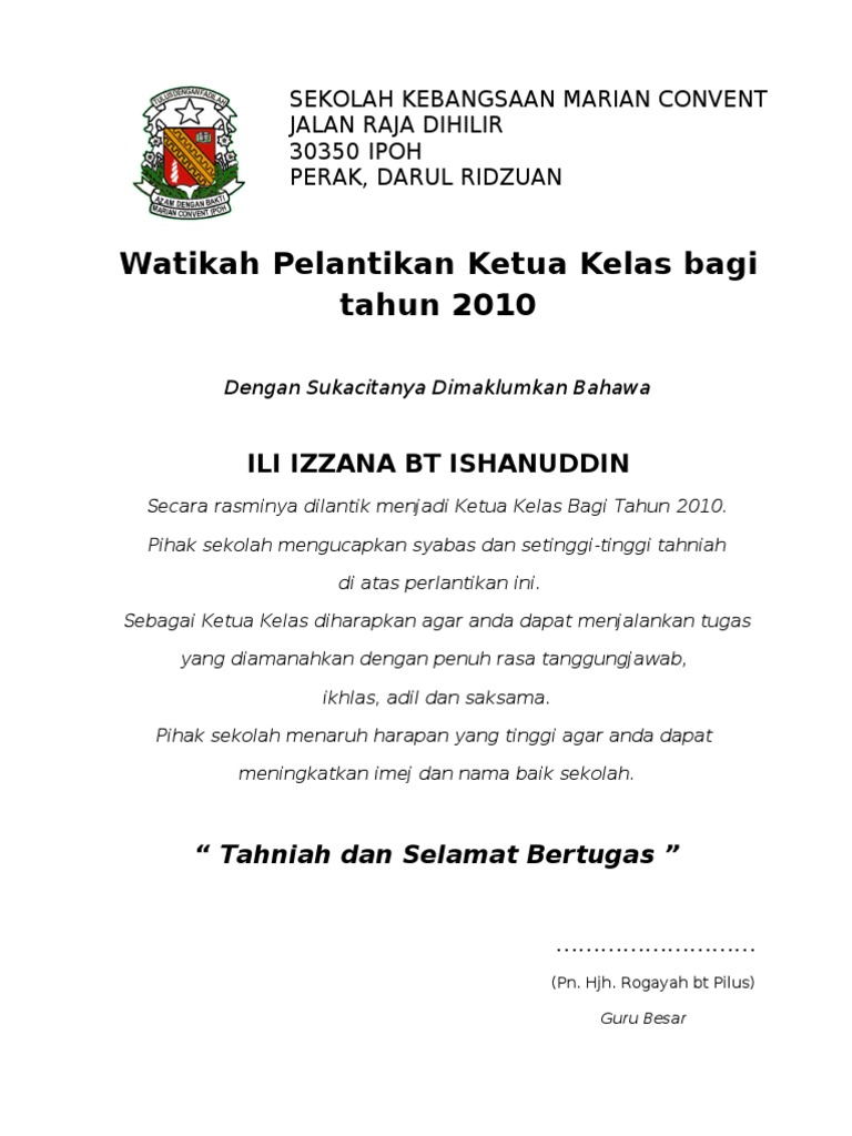 Kertas Kerja Pelantikan Pengawas Ketua Kelas Dan Penolong Ketua Kelas