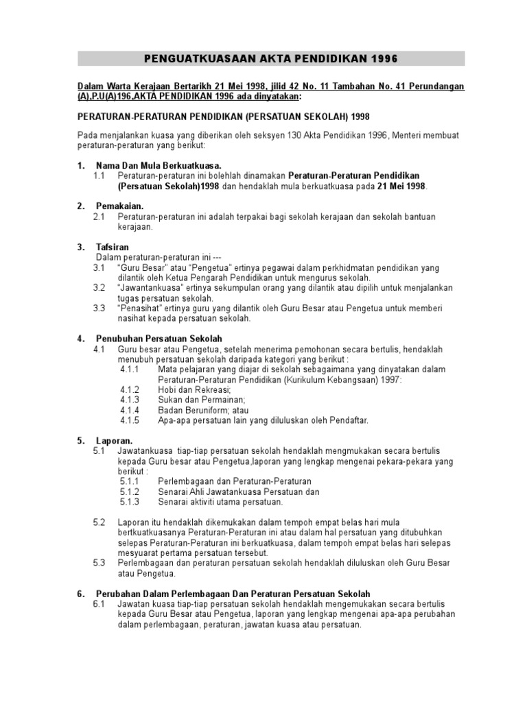 1998 Spi 5 Akta Pendidikan 1996 Dan Peraturan Peraturan Di Bawah Akta Pendidikan 1996 Pdf Edocr
