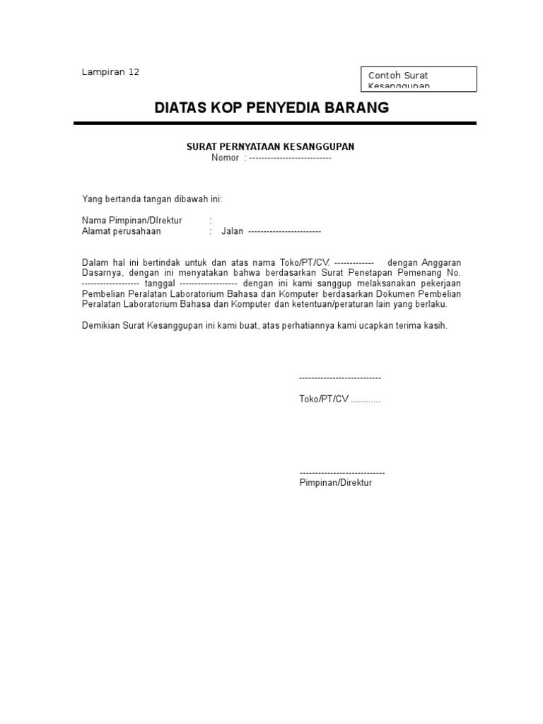 Contoh Surat Pernyataan Kesanggupan Menyelesaikan Pekerjaan Doylc Asia