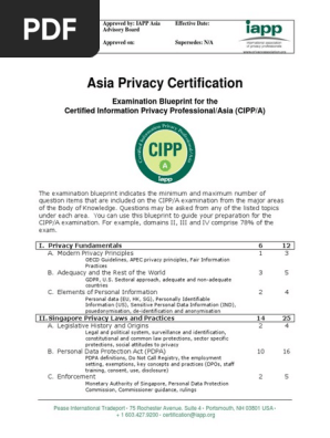 Asia Privacy Certification Examination Blueprint For The Certified Information Privacy Professional Asia Cipp A Personally Identifiable Information Information Privacy