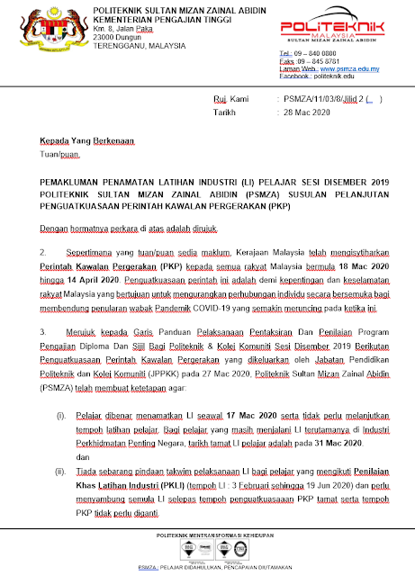 Li Sesi Disember 2019 Penamatan Li Pelajar Susulan Penguatkuasaan Perintah Kawalan Pergerakan Pkp Upli Psmza