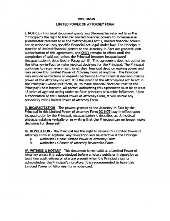 Wisconsin Limited Special Power Of Attorney Form Power Of Attorney Power Of Attorney