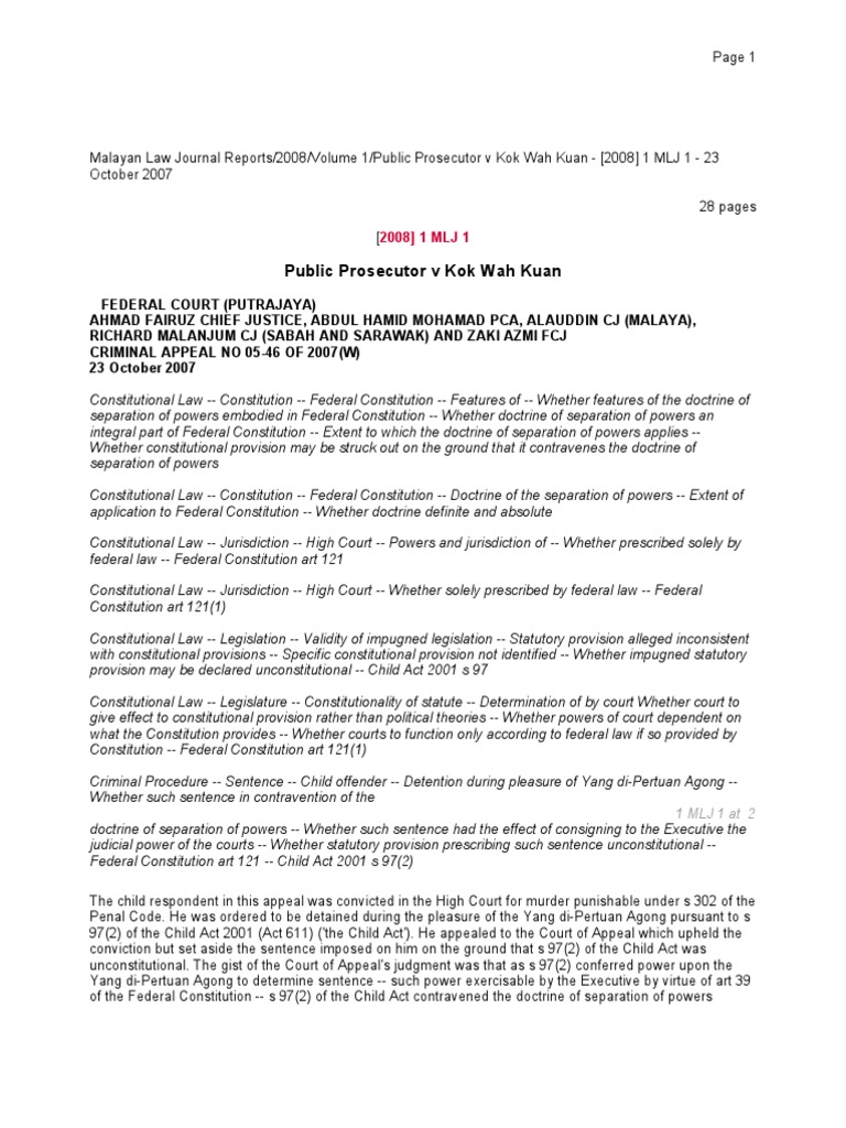 Public Prosecutor V Kok Wah Kuan Pdf 2008 1 Mlj A B Public Prosecutor V Kok Wah Kuan 1 Public Prosecutor V Kok Wah Kuan Federal Court Putrajaya U2014 Course Hero
