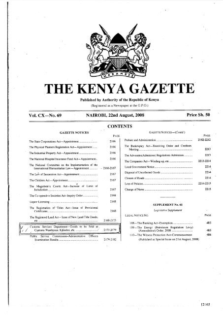 Https Gazettes Africa Archive Ke 2011 Ke Government Gazette Dated 2011 01 07 No 1 Pdf