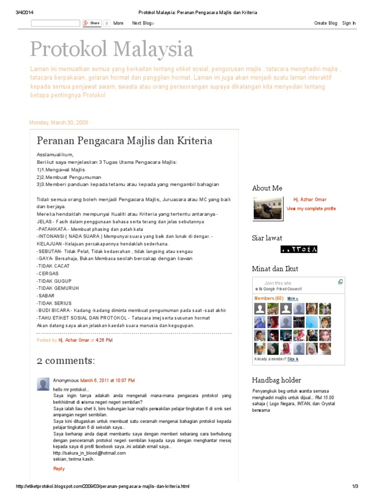 Protokol Malaysia Peranan Pengacara Majlis Dan Kriteria