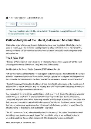Critical Analysis Of The Literal Golden Mischief Rule Studocu
