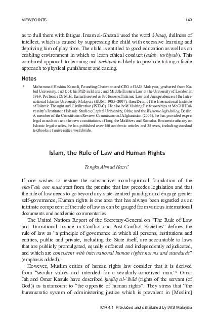 Pdf Islam The Rule Of Law And Human Rights Tengku Ahmad Hazri Academia Edu