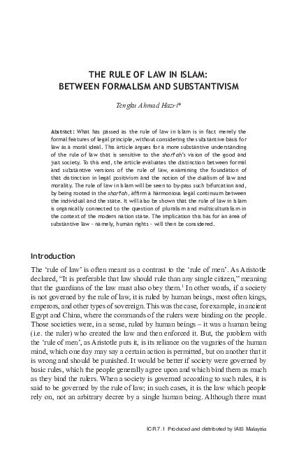 Pdf The Rule Of Law In Islam Between Formalism And Substantivism Tengku Ahmad Hazri Academia Edu