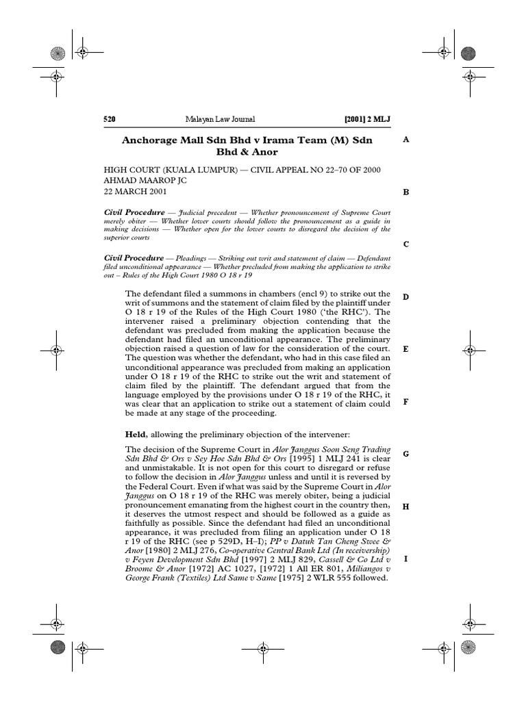 Anchorage Mall V Irama Judgment Law Precedent