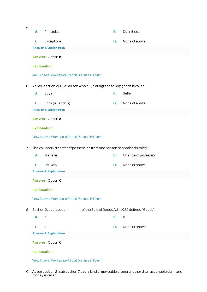 Scope Of Sale Of Goods Act Business And Labour Law Lecture Handout Docsity