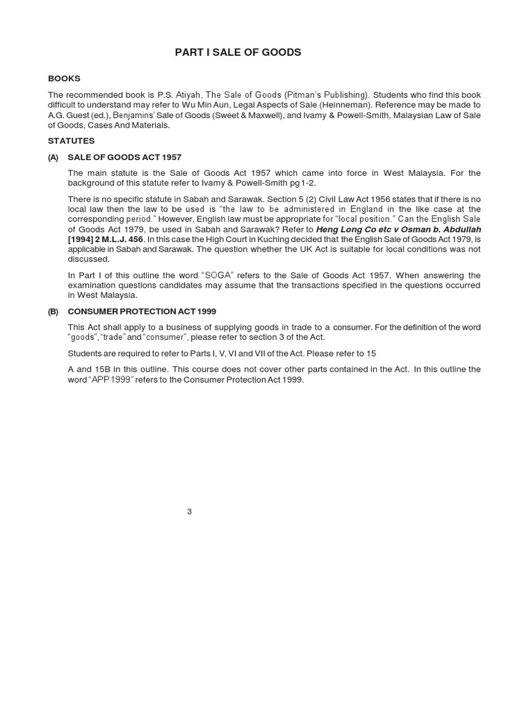 Sale Of Goods Act Of Goods Act 1893 Law Governing Sale Of Goods Sale Of Goods Act 1957 And Was Revised Duties Of Seller To Pass Good Title To The Buyer Pdf Document