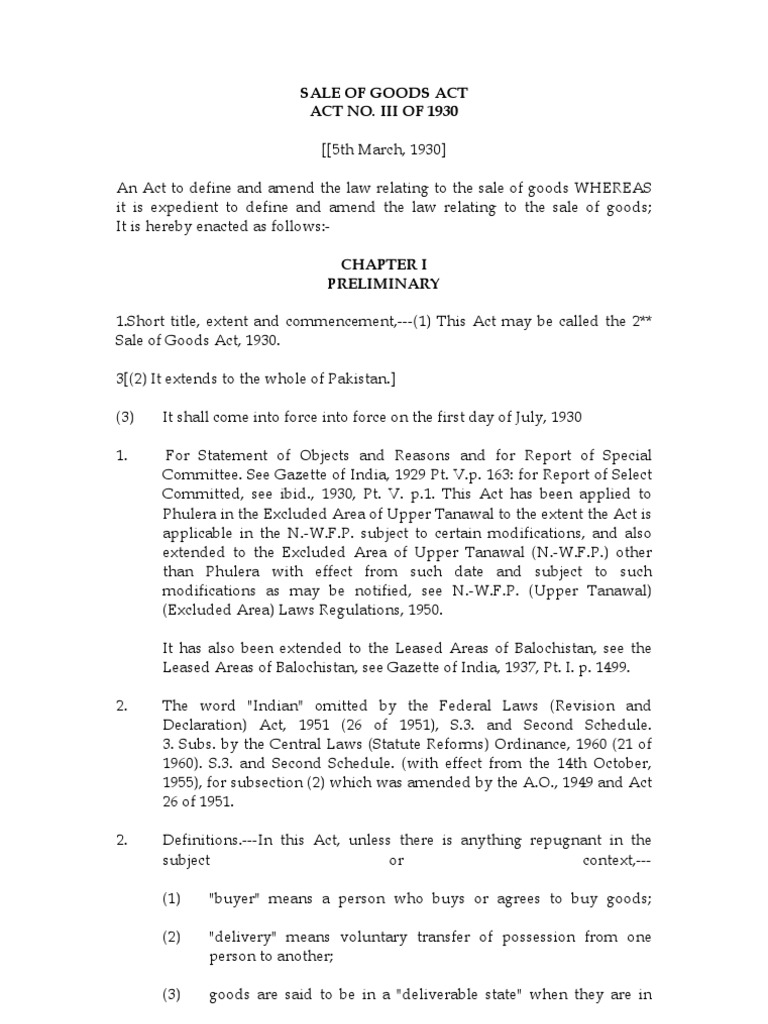 Sale Of Goods Act 1930 Ebook In Pdf Pdf Document