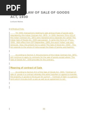 Sales Of Goods Act 1930 Notes Pdf
