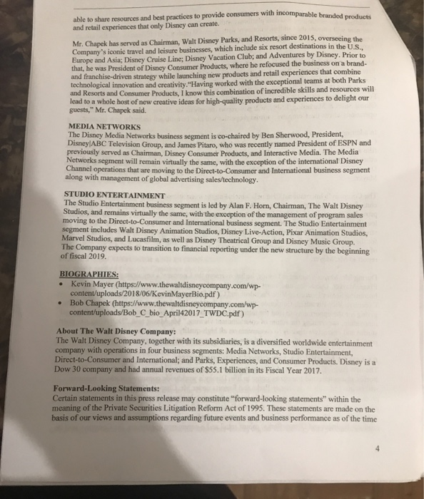 Solved Group Exercise Walt Disney Company Corporate Stra Chegg Com