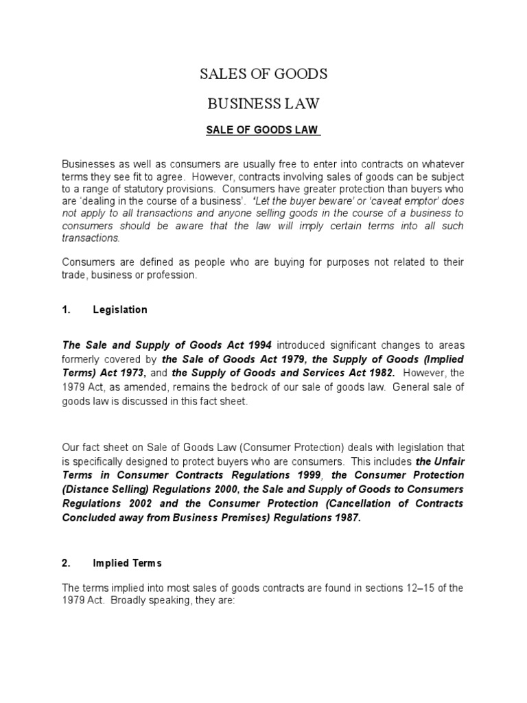 Sales Of Goods Act 1979 Business To Business