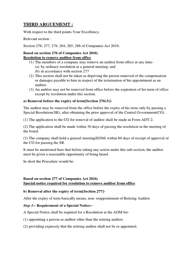 A company may by ordinary resolution remove a director not being a director appointed by the central government in pursuance of section 408 before the expiry of his period of office. The auditor may submit a statement of circumstances of his resignation to the registrar within 7 days from the submission of his notice of resignation. Companies act 2016 section 284 cessation of office by auditor company name to the registrar of companies i we hereby submit a copy of a written representation statement of circumstances pursuant to subsection 277 3 or subsection 281 1 of the companies act 2016. Companies act 2016.