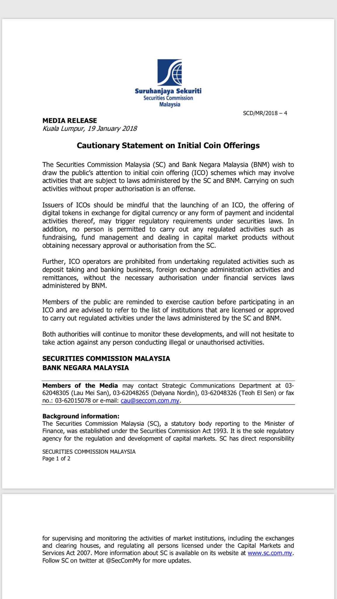 Melissa Goh On Twitter Malaysia Securities Commission Issued Similar Cautionary Statement Against Icos Unlicensed Operators Can Be Fined Up To Rm10 Mil Or Jailed Up To 10 Years Or Both Under