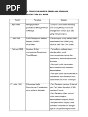 Carta Sejarah Penggubalan Perlembagaan Sehingga Penubuhan Persekutuan Malaysia