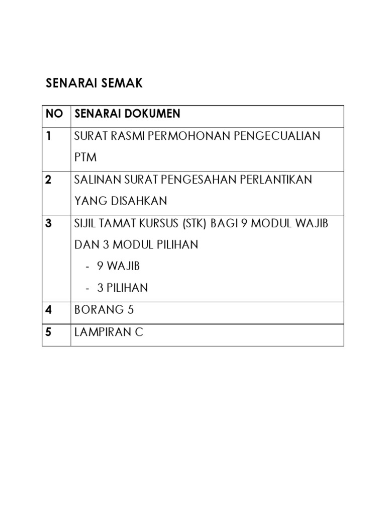 Borang 2 Senarai Semak Permohonan Pengecualian Ptm