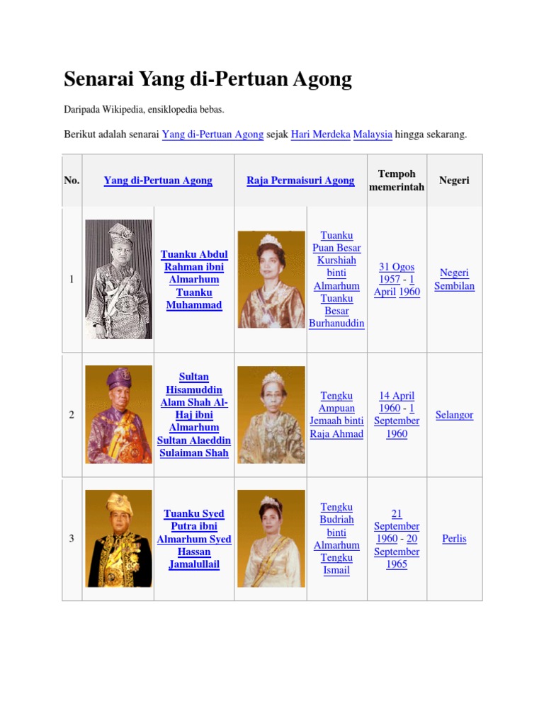 Senarai Yang Di Pertuan Agong Malaysia Pages 1 18 Text Version Fliphtml5