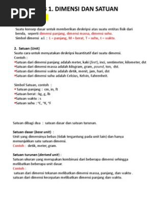 Sistem Pengukuran Satuan Dan Dimensi Besaran Keadaan Dan Sifat Sifat Benda Yang Dapat Diukur Pdf Document