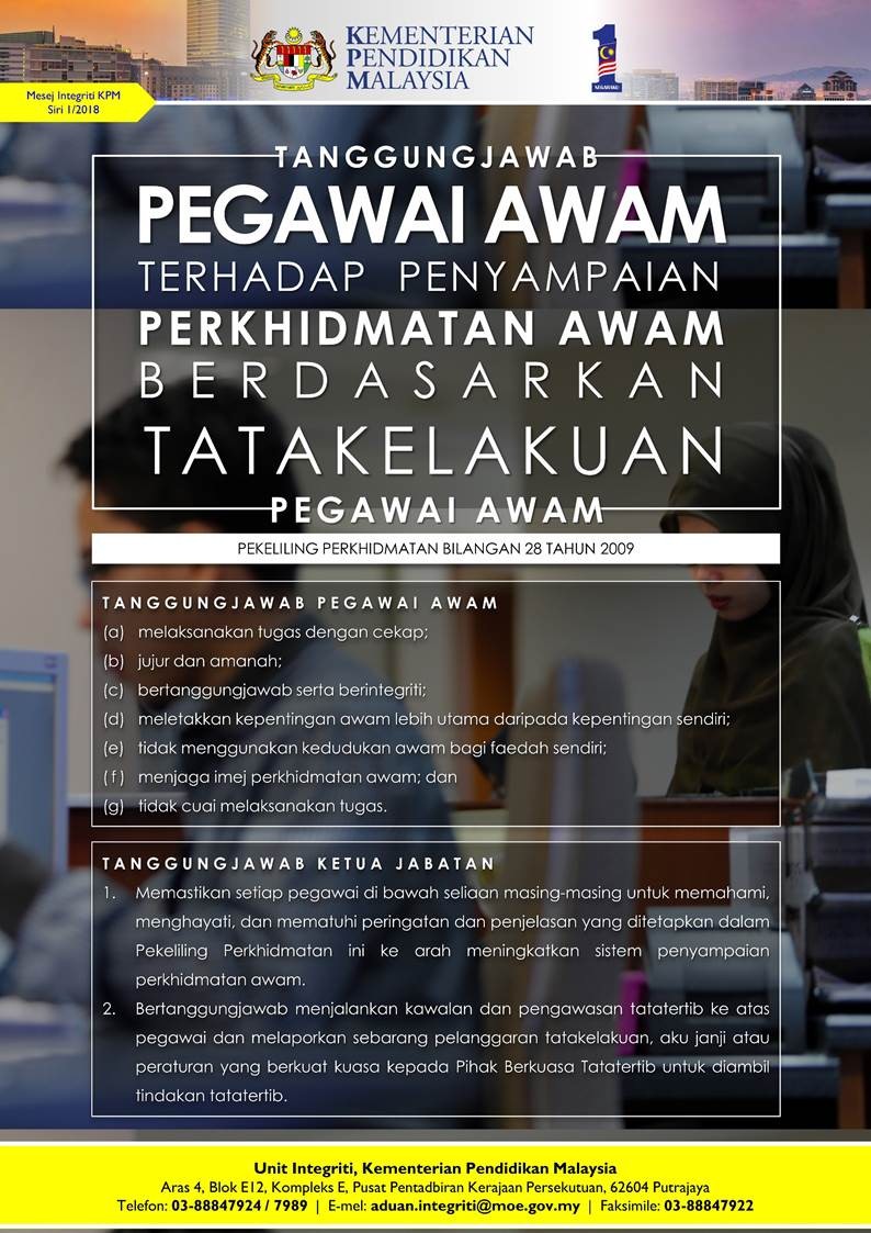 Mesej Integriti Kementerian Pendidikan Malaysia Kpm Siri 1 2018 Tanggungjawab Pegawai Awam Sk Batu 38