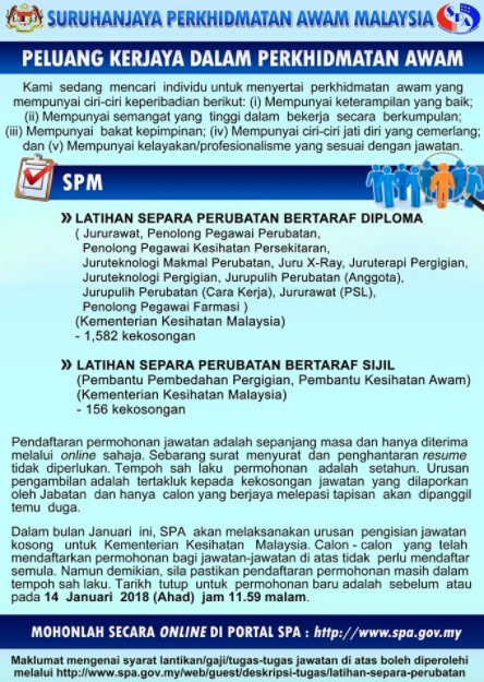 Spa Syam Perodua Kl Iklan Peluang Kerjaya Dalam Perkhidmatan Awam A Latihan Separa Perubatan Bertaraf Diploma Kekosongan 1 399 B Latihan Separa Perubatan Bertaraf Sijil Kekosongan 172