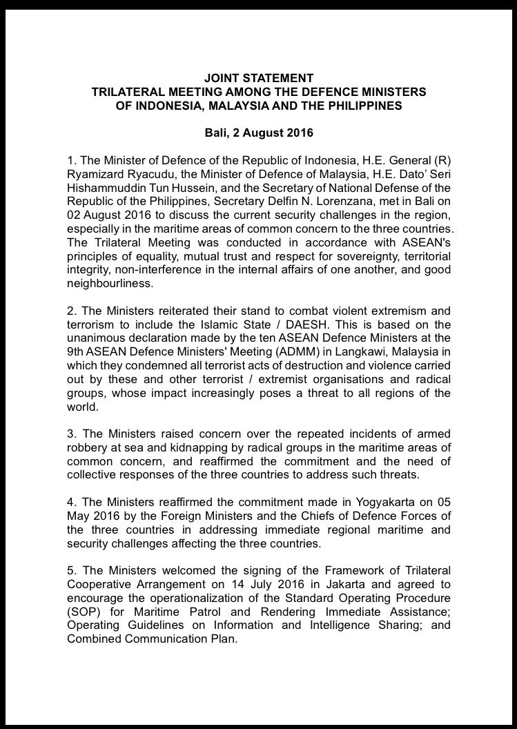Mindef Malaysia On Twitter Joint Statement Trilateral Meeting Among The Defence Ministers Of Indonesia Msia Philippines Diplomasipertahanan