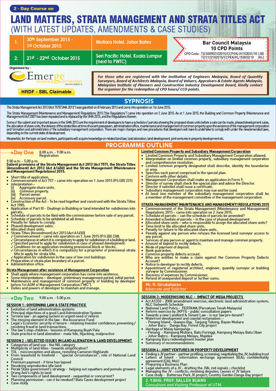 Leghisgeosciads Blog Ad 2 Day Course On Land Matters Strata Management And Strata Titles Act In Kl Jb Sept Oct 2015