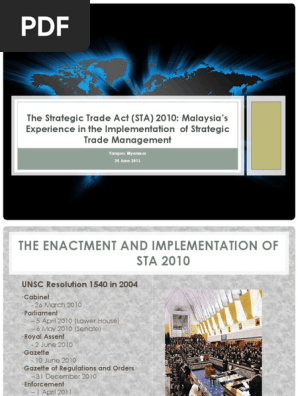 The Strategic Trade Act Sta 2010 Malaysia S Experience In The Implementation Of Strategic Trade Management Association Of Southeast Asian Nations Malaysia