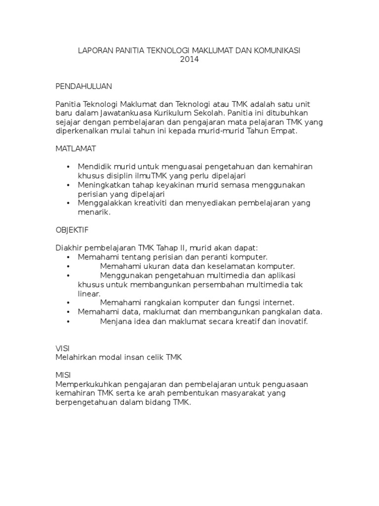 Laporan Panitia Teknologi Maklumat Dan Komunikasi
