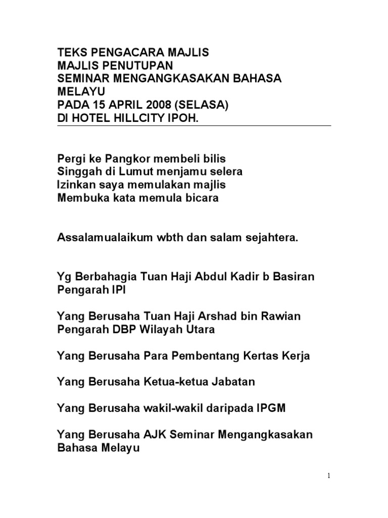 Teks Ucapan Pengacara Majlis