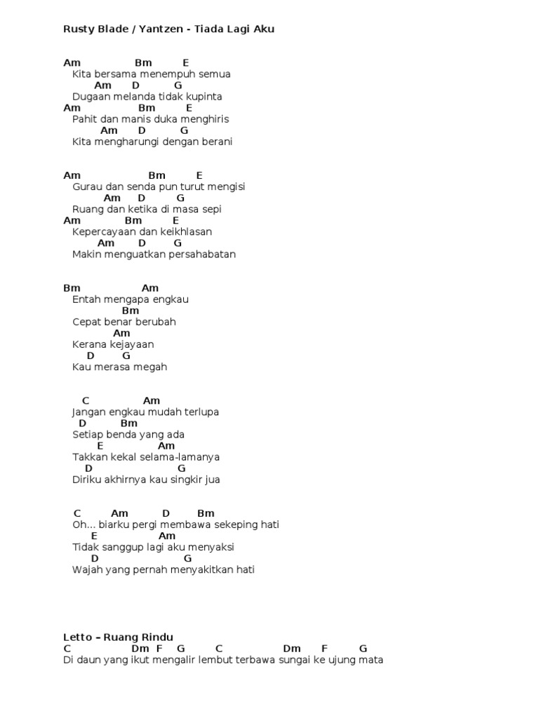 Chords For Rusty Blade Tiada Lagi Aku Lirik