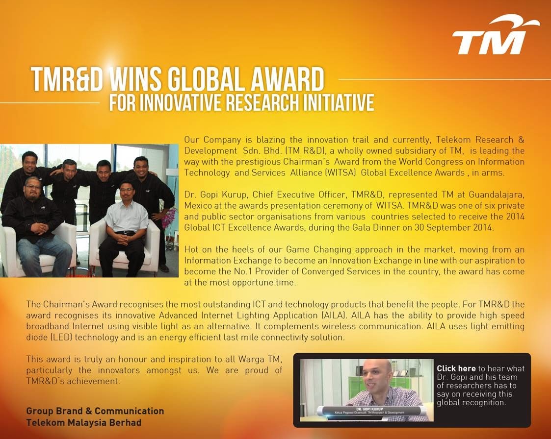 Tm R D Wins The Innovation Award At The Asia Communication Award 2013 Unifi Specialist By Tm