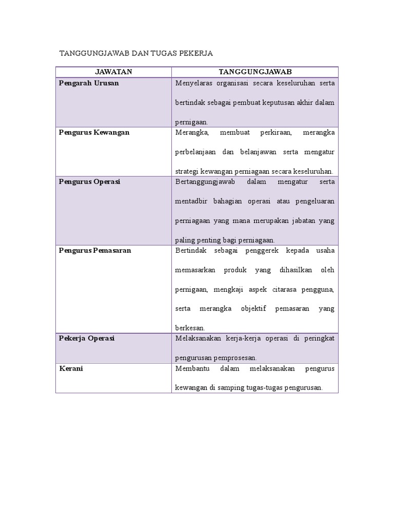 Tugas Pengurus Sumber Manusia