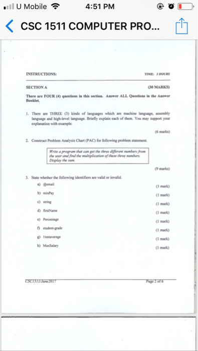 Solved 11 U Mobile令 4 51 Pm Csc 1511 Computer Pro Secti Chegg Com