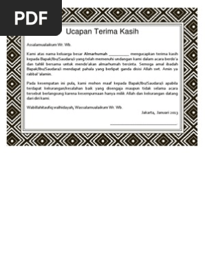 Ucapan Terima Kasih Atas Sumbangan Orang Meninggal