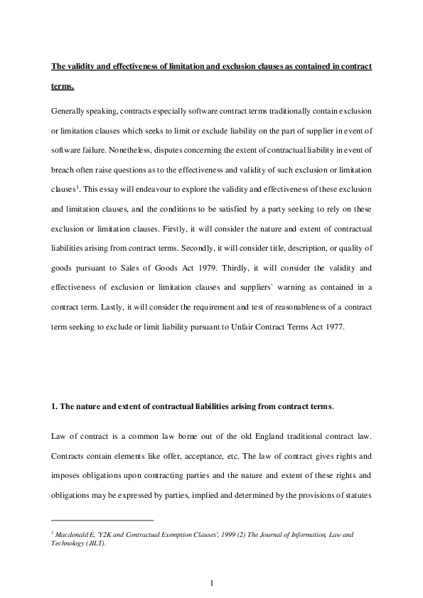 Pdf The Validity And Effectiveness Of Limitation And Exclusion Clauses As Contained In Contract Terms Jp Law Solicitors Academia Edu