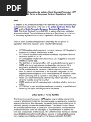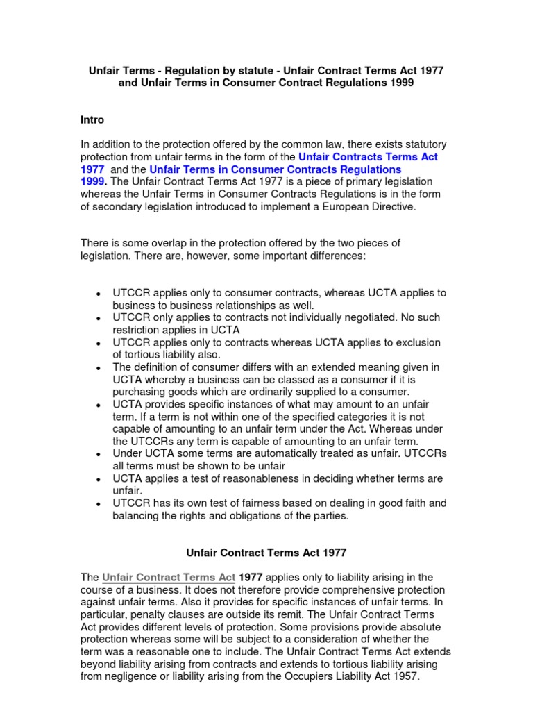 Unfair Terms In A Contract Act 1977 And Regulations Essay