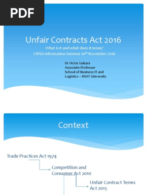 Unfair Contract Terms Act 2016 1 1 Pdf Contractual Term Law Of Obligations