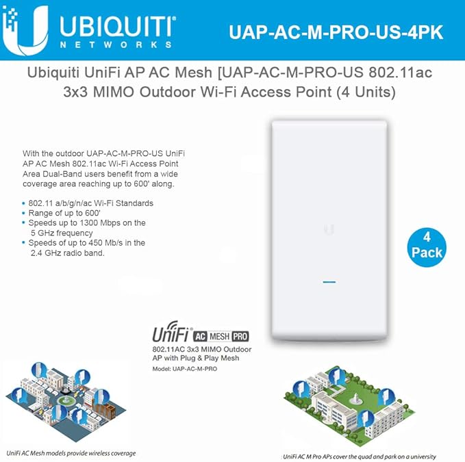 Amazon Com Ubiquiti Uap Ac M Pro Us Unifi Ac Mesh Pro 802 11ac Wireless Access Point 4 Pack Electronics