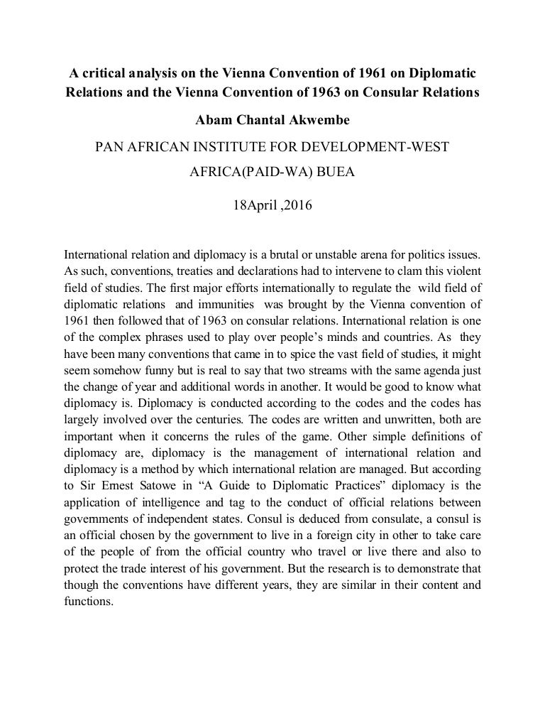 Pdf An Analysis On The 1961 Vienna Convention On Diplomatic Relations