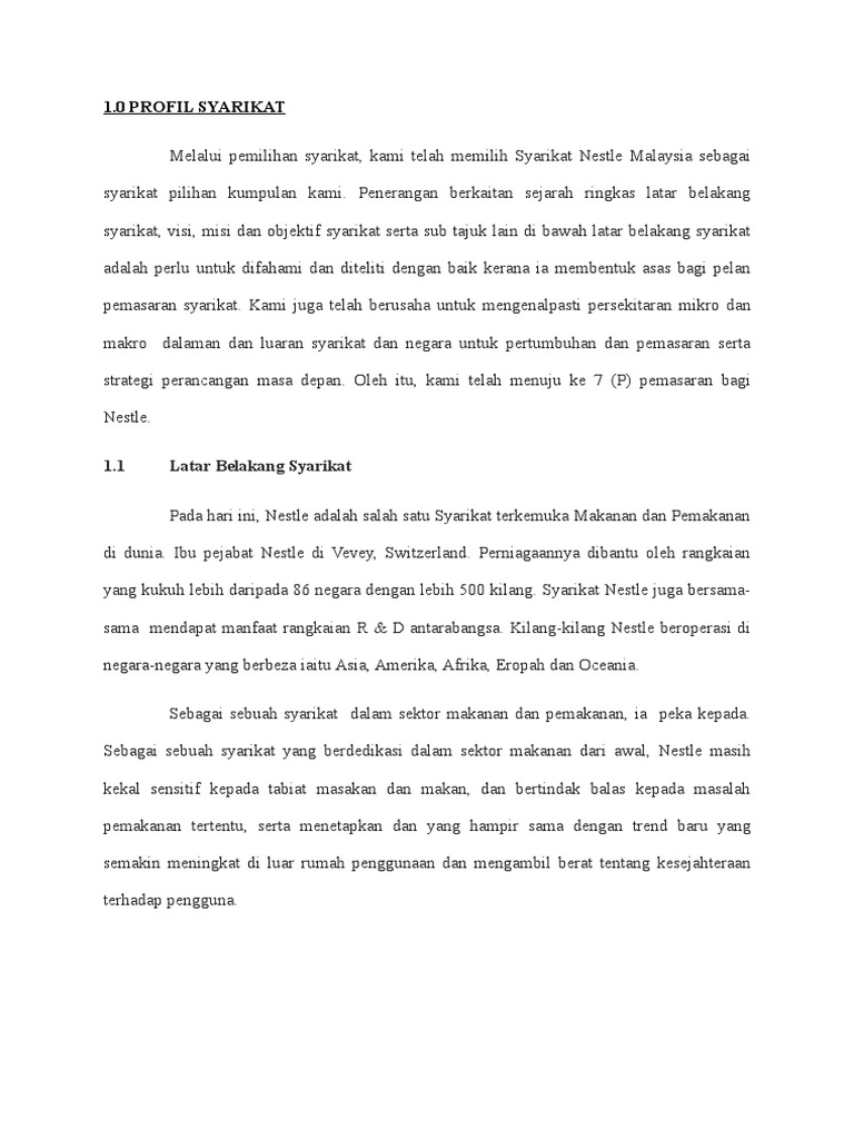 Nestle Company Docx 1 0 Profil Syarikat Melalui Pemilihan Syarikat Kami Telah Memilih Syarikat Nestle Malaysia Sebagai Syarikat Pilihan Kumpulan Kami Course Hero