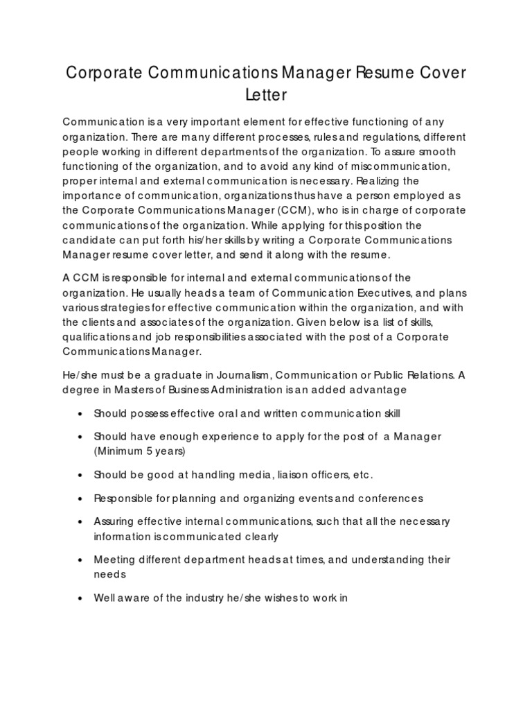 Corporate Communication Manager Resume Cover Letter Resume Communication