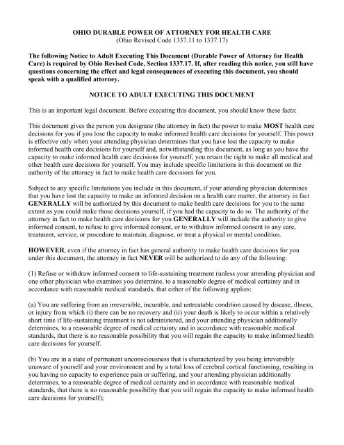 Ohio Durable Power Of Attorney For Health Care Loraincounty Com