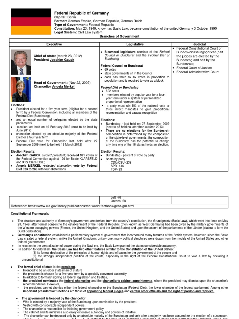Federal Republic Of Germany Contours Written Constitution Basic Law Drafted In 1949 A Republic Head Of State Is An Indirectly Elected President A Ppt Download