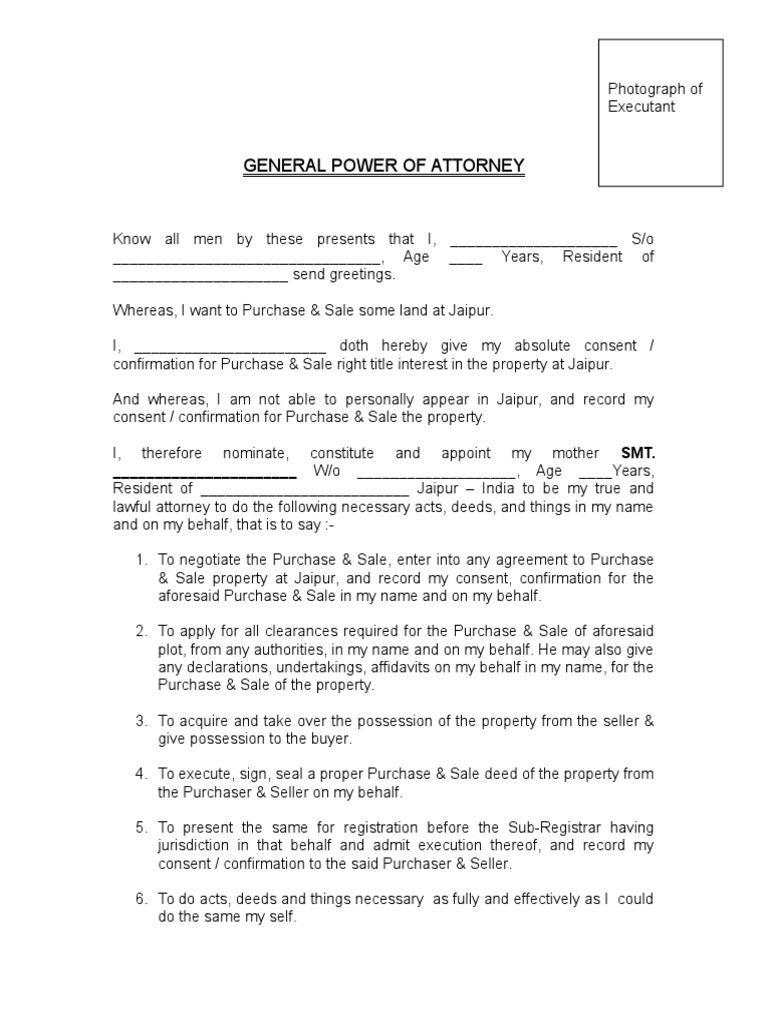 Property Property Registration General Power Of Attorney India Nri Sample
